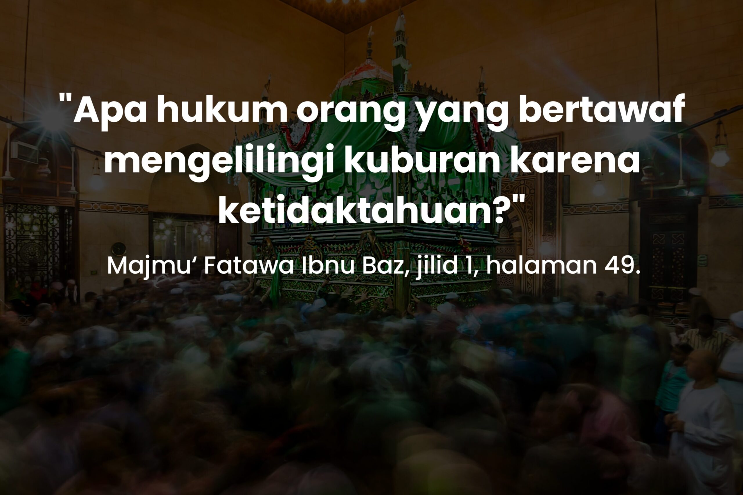 Pertanyaan : “Kita melihat di sebagian negeri-negeri Islam ada orang-orang yang bertawaf mengelilingi kuburan karena ketidaktahuan. Apa hukum perbuatan mereka ini, dan apakah seseorang yang melakukannya bisa disebut musyrik?”